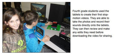 Tinkering with Tablets will allow students to be independent when sharing what they have learned with others. It will also give the freedom to work on technology outside of the computer lab. This will provide two more tablets for their STEM classroom. Students in 3-5th grades use the tablets to take photos, create project videos, play Kahoot, remotely control robots and make stop motion videos. They can use the tablets in the hallway, library or anywhere they are learning. It allows for the use of technology outside the computer lab